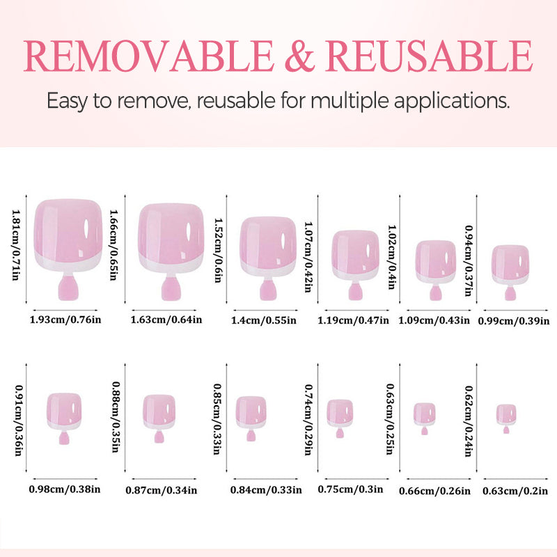 REMOVABLE AND REUSABLE: Easily remove without damaging your natural nails, and reuse the press-on nails multiple times, making them a practical and cost-effective solution for perfect toenails.