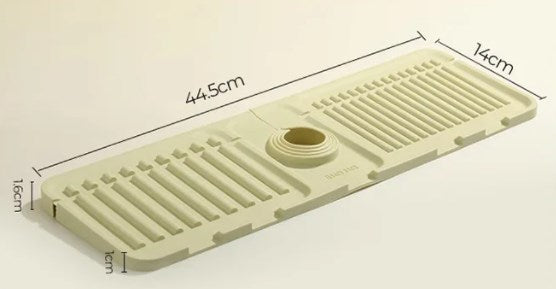 Simplify your kitchen cleanup routine and keep your sink area dry & organized with the Faucet Splash Guard Draining Tray Mat.
