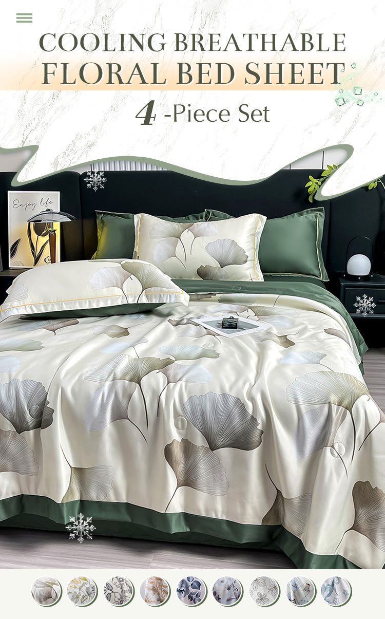 🔥Summer Limited Sale🌸Cooling Breathable Floral Bed Sheet (4-Piece Set)