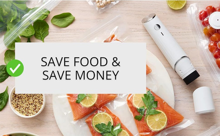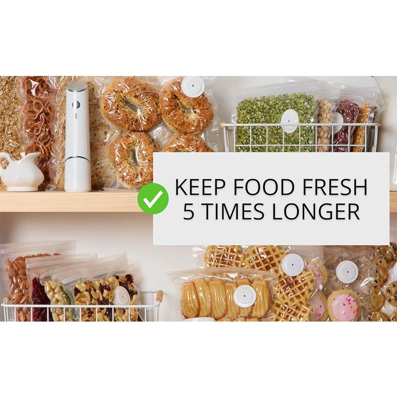 REUSABLE BAGS – The 5 included vacuum bags are reusable, and safe for the dishwasher, freezer, and microwave, offering convenience and versatility for long-term storage and easy reheating.