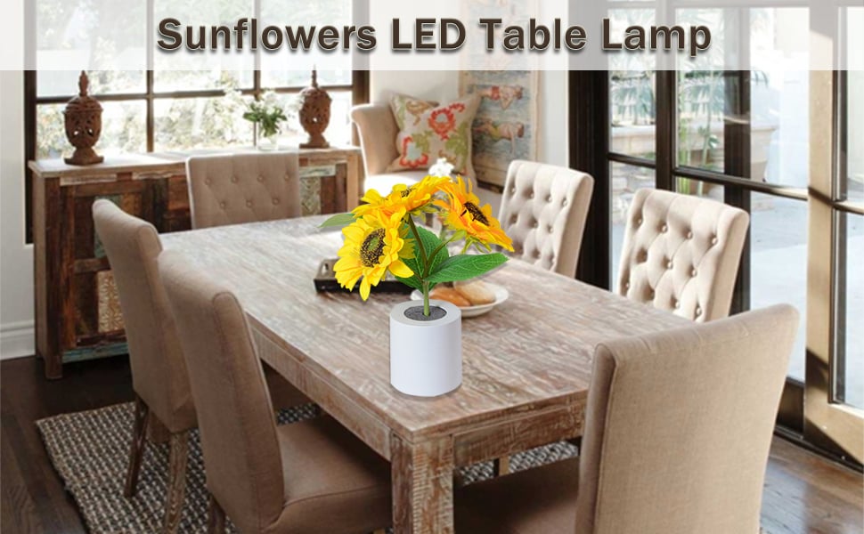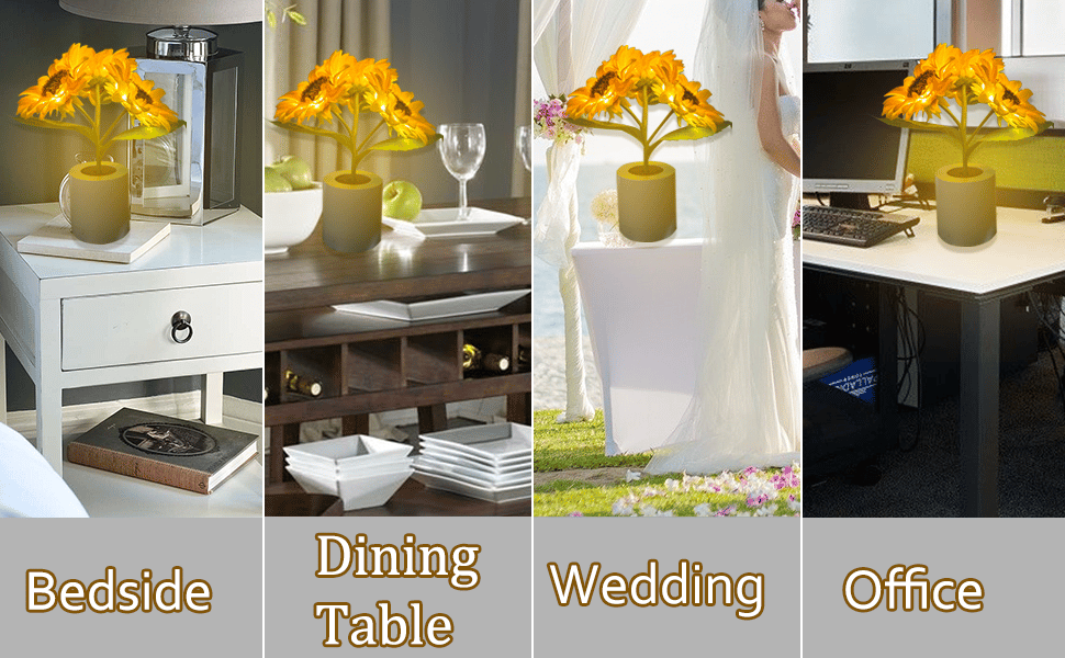 Sunflower potted artificial flowers, real feel, not easy to fade. It can not only be used as a bedside lamp, but also a perfect bedroom decoration, living room decoration, wedding decoration, garden decoration and so on.