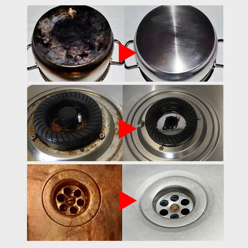 Applicable to stainless steel, kitchenware, pot bottom, hood, stainless steel rust, burn marks, heavy grease stains in the kitchen, tile stains, electrical appliance shells, etc.