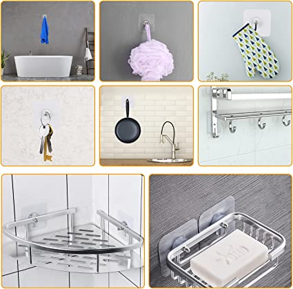 - HEAVY DUTY ADHESIVE HOOKS- self-adhesive Great for hanging shower and bath accessories can hold umbrellas scarvestowels robes bags coats keys purses and baseball capsdog leashes etc.