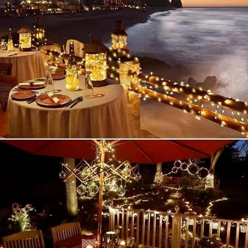 8 LIGHTING MODES - Solar Powered String Lights bring 8 lighting modes to feed your needs! Gorgeous lighting modes including combination, fireflies flashing, waves, fading, chasing/flashing, fading slowly, twinkle/ flashing and steady on.