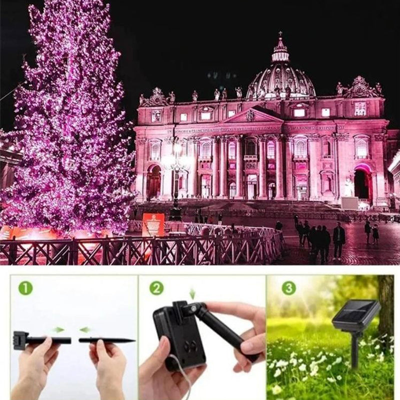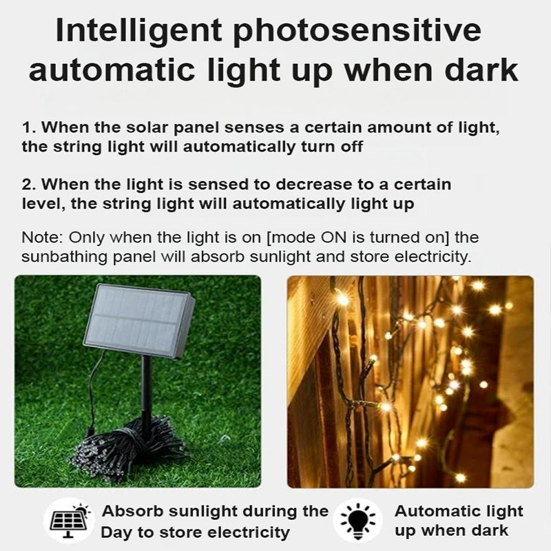 SOLAR-POWERED & EXCELLENT PERFORMANCE - The 100 led solar-powered string light (low voltage, no transformer included) is no need battery replacement and charge even on cloudy days and turn on automatically at dusk with bright light color, Solar Light will have the best performance.