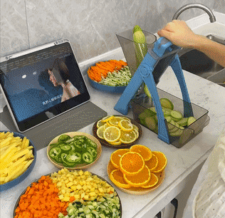 The Multi-Bladed Vegetable Cutter is the perfect kitchen tool for anyone who wants to cut their vegetables in different shapes and sizes. It's easy to use, fast, and fun! You can even make fries out of potatoes or carrots. And anyone can operate it too!
