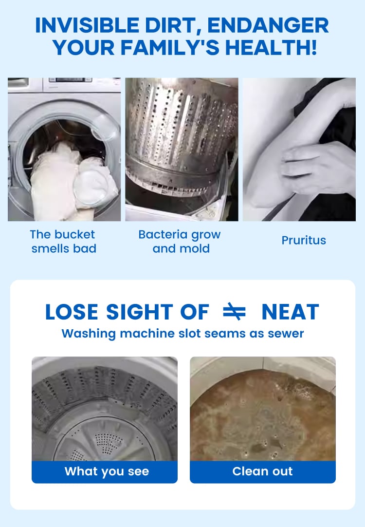Say goodbye to hidden grime and lingering odors in your washing machine with our powerful cleaner.