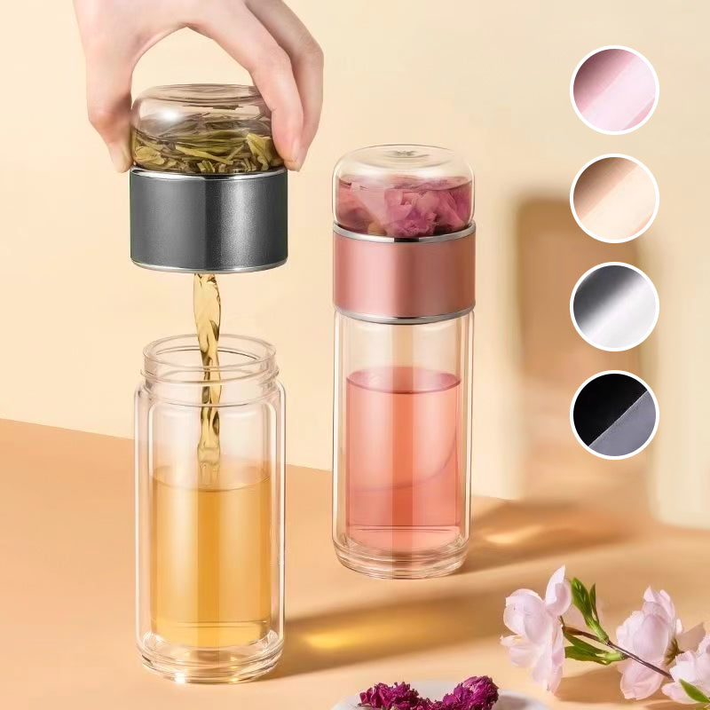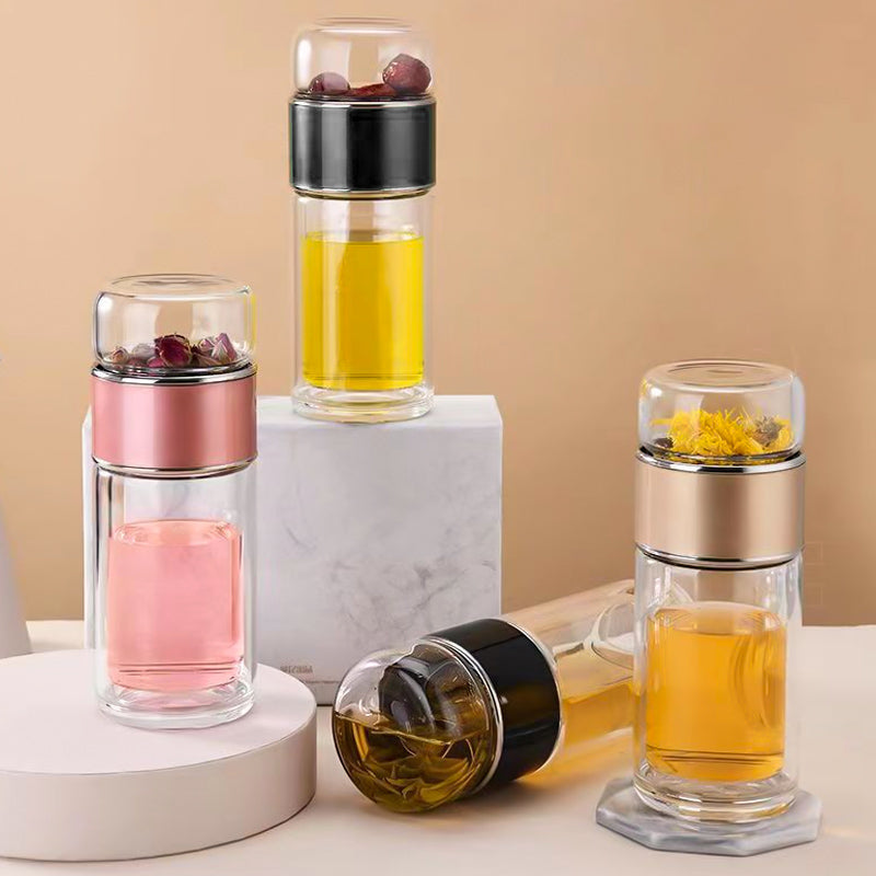 Premium Double Wall Tea & Water Separation Glass Bottle