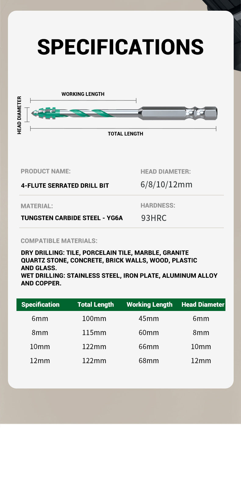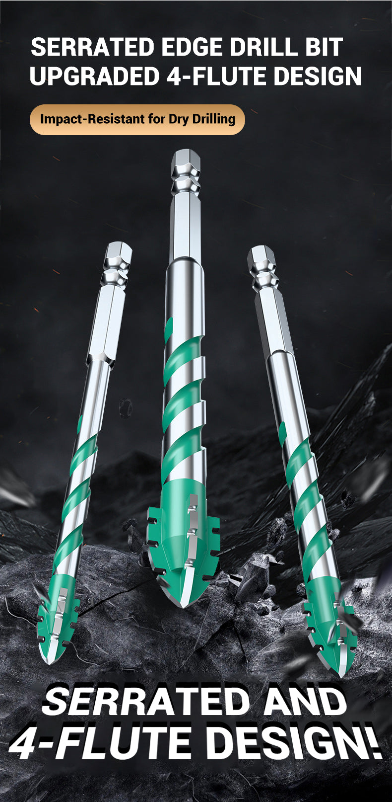 • ✨LAST DAY SALE 50% OFF✨Greene® 4PCS Premium 4-Flute Serrated Edge Drill Bit Set