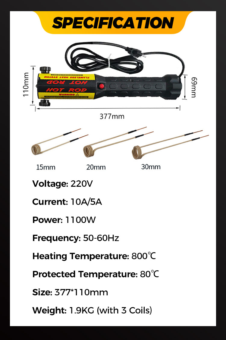 Magnetic Induction Heater Kit - 1100W Induction Heat Bolt Removal Tool