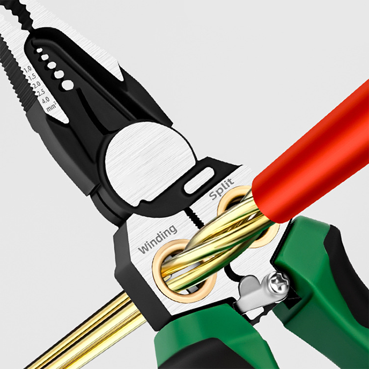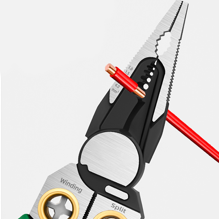 6-IN-1 FUNCTIONALITY: Combines wire cutting, stripping, coiling, splitting, gripping, and voltage testing (12-220V) in one compact tool. The precision-ground high-carbon steel blade makes clean cuts on copper/aluminum wires, while the integrated wire separator quickly splits paired cables without damage. Eliminates the need for carrying multiple tools.