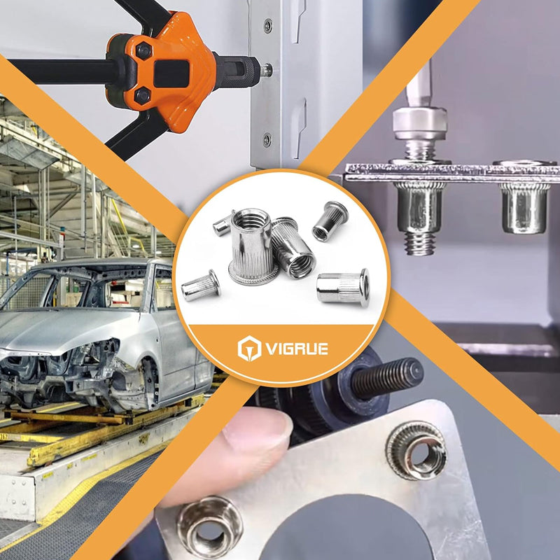 EASY INSTALLATION - Designed for effortless installation, these flat head rivet nuts can be easily inserted into pre-drilled holes. With a simple twist, you achieve a solid grip, making your assembly process quick and efficient. Perfect for both beginners and experts! See Installation Tips.