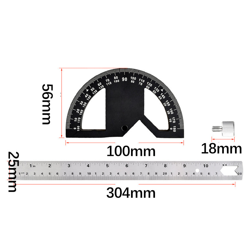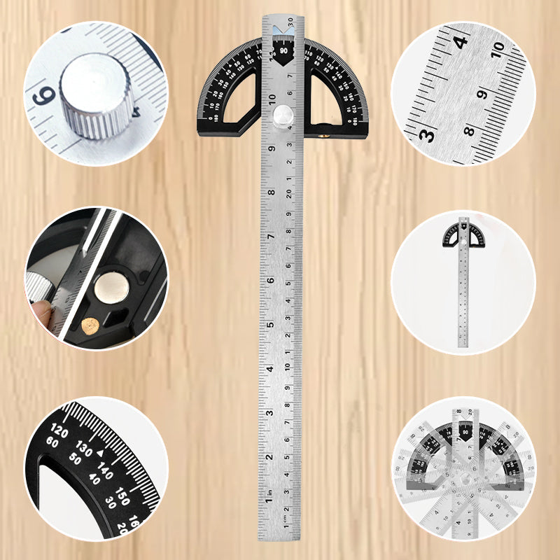 ANGLE RULER - By using a nut to combine the protractor and ruler, you can accurately measure and mark angles from 0° to 180°, and even perform dovetail and mortise operations, making it an essential tool for woodworking and carpentry.