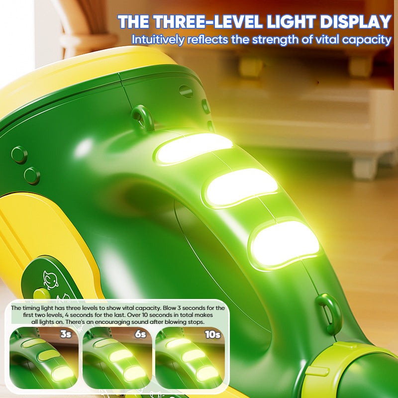 THREE TYPES OF LIGHTING DISPLAY: The timing light features three levels, visually indicating lung capacity. The first two lights require three seconds of blowing each, while the last light needs four seconds. If you blow continuously for over ten seconds, all three lights will illuminate. Upon completion, a sound effect will play to celebrate reaching the levels.