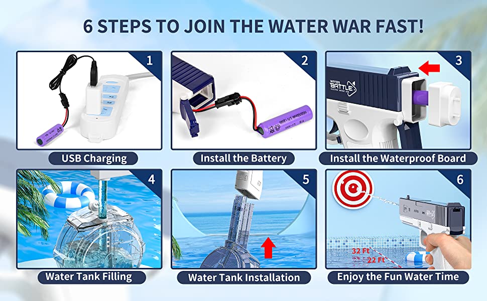 🔥The long shooting distance of 26-32 ft helps you to dominate the water gun party!
